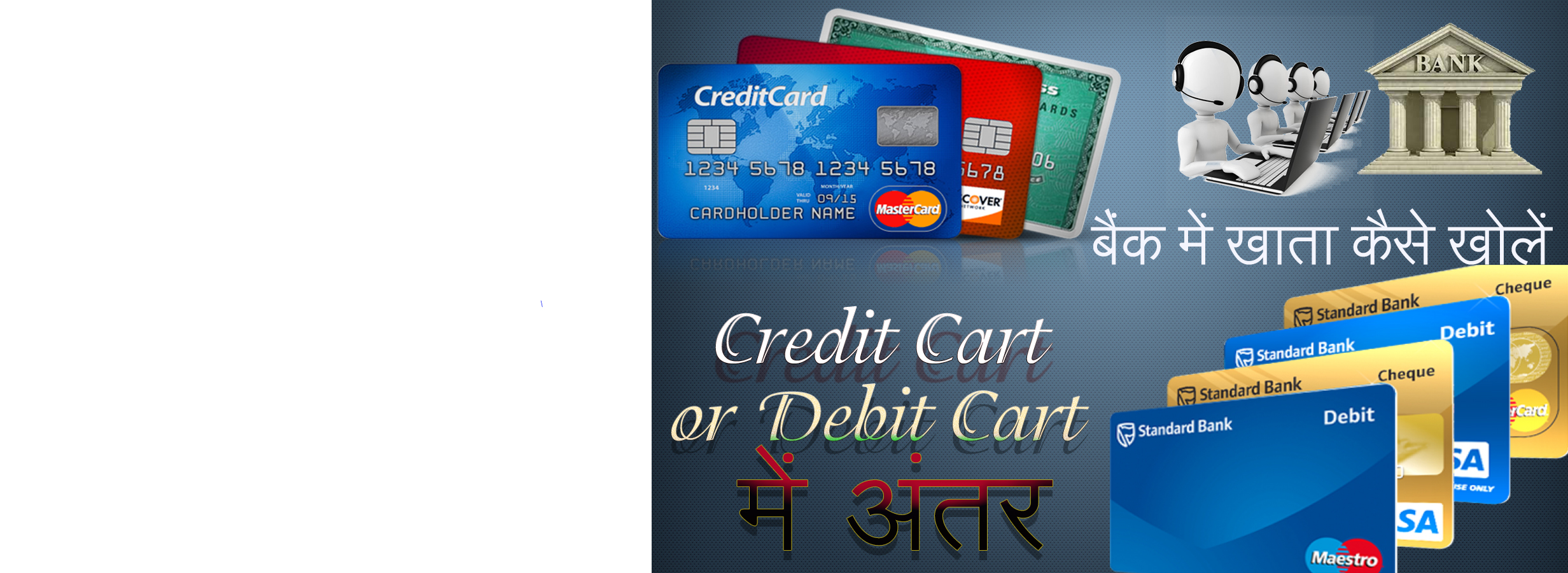 - यहाँ आप ये सोच रहे होगें की यहाँ पर तो हम आपको क्रेडिट कार्ड और डेबिट कार्ट में अंतर बताने वाले थे लेकिन बीच में ये वकवास कैसे शुरू कर दी तो हम आपको बता दे की क्रेडिट कार्ट और डेबिट कार्ट में अंतर जानने से पहले बैंक के बारे में जानना जरुरी है और अकाउंट खोलने के बारे में जानना बहुत जरुरी है |